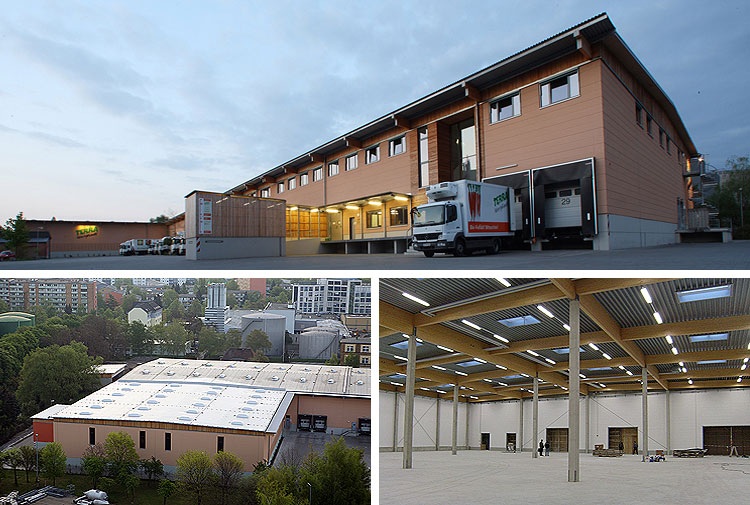Logistikzentrum Berlin-Neukölln 2. Erweiterung: Trockenlager, 2100 qm In Partnerschaft mit G. Leber, Architekt, Berlin Alle Leistungsphasen Gesamtansicht Dachaufsicht Erweiterung Trockenlager innen