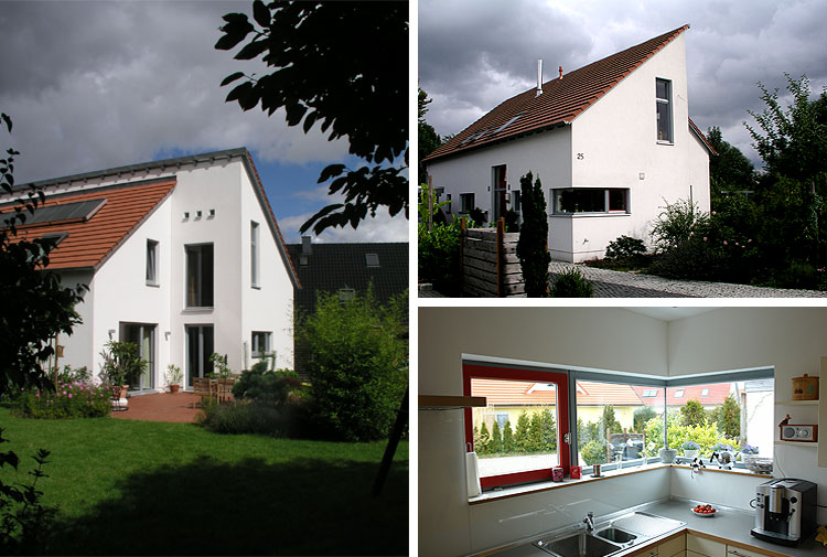 Neubau Einfamilienhaus in Massivbauweise in Braunschweig Planung Ansicht Straßenseite Innenansicht Küchenfenster Ansicht Gartenseite