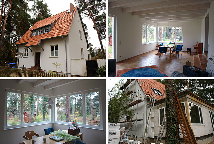 Energetische Sanierung Einfamilienhaus in Berlin-Zehlendorf Energieberatung mit KfW-Förderung, energieeffiziente Einzelmaßnahmen Ansicht Straßenseite Essbereich Gartenfenster Erweiterung